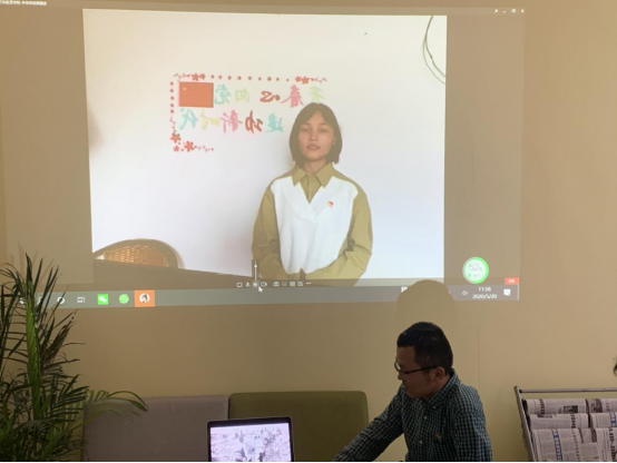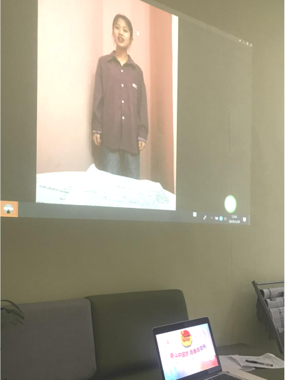 建筑工程学院汪洪伟同学在自家墙上手绘团旗背景,直播“微团课”
