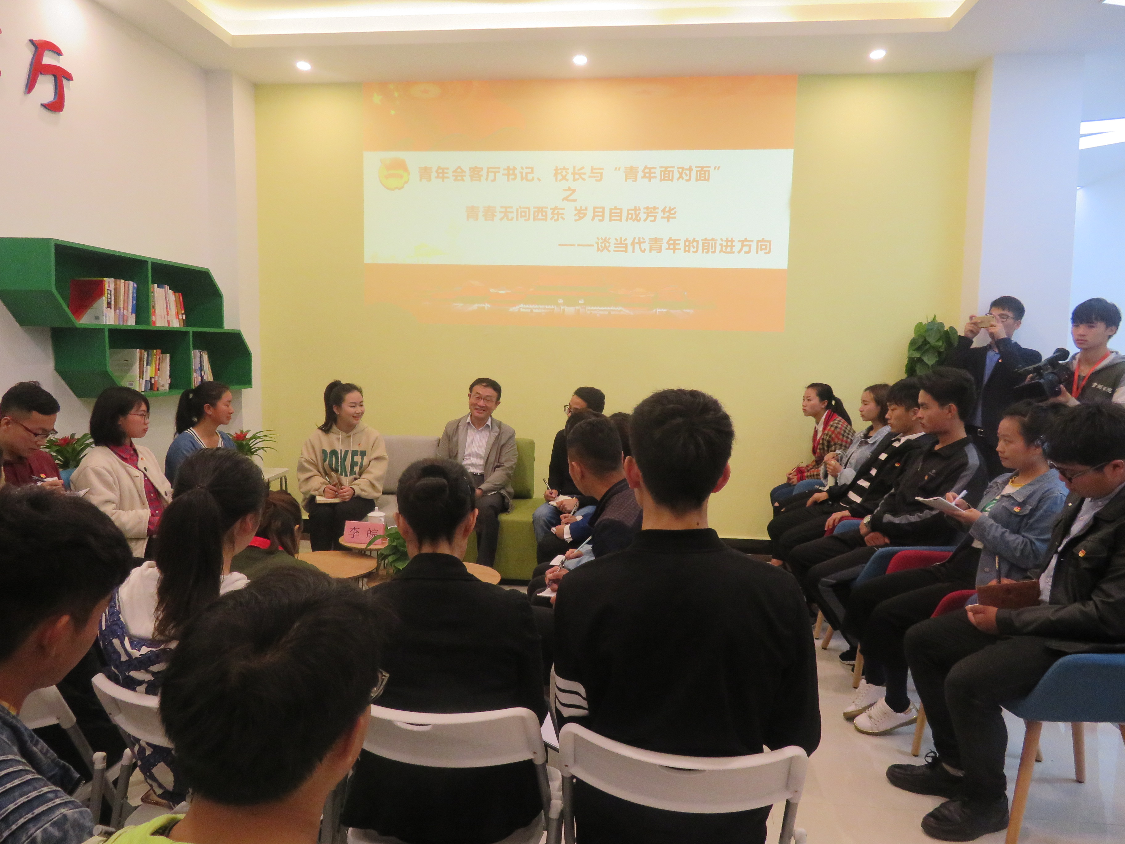 5月3日下午2点半,在我校学生活动中心的青年会客厅举办了书记校长与青年面对面活动之“青春无问西东、岁月自成芳华——谈当代青年的前进方向”,我校党委副书记、校长李皖老师主讲,学校党办、组织部、宣传部、团委等部门负责同志及学校团干代表、各学生组织干部代表参加了活动。