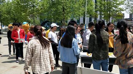 阳光正好,是个适合领“种”的日子。2018年4月17日中午十二点,“绿色天使”(记者团、青年志愿者协会成员)在一食堂门口给全校师生发送福利啦——绿色植株!