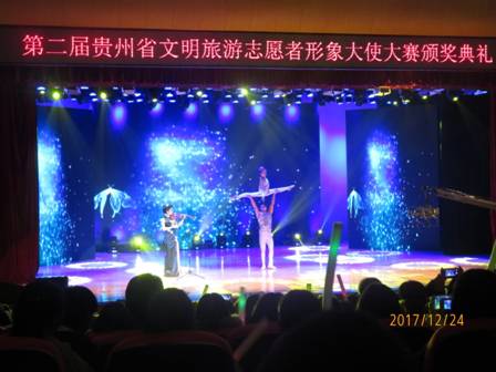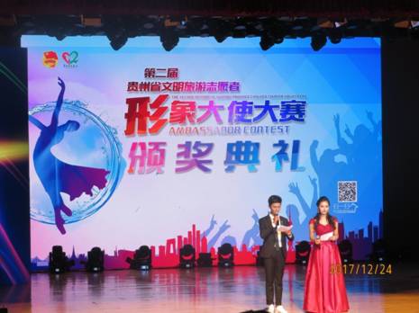 2017年12月24日晚,由共青团贵州省委、贵州省文明办、贵州省旅游发展委员会、贵州省文联、贵州省志愿服务联合会、铜仁市人民政府联合主办的第二届贵州省文明旅游志愿者形象大使大赛颁奖典礼在我校大礼堂隆重举行。共青团省委副书记丁毅、我校党委副书记郭万才老师及省文明办、省旅游发展委员会、省志愿服务联合会相关领导出席。