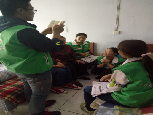 志愿者们陪老人聊天、读报,他们的微笑展示了志愿者的风采