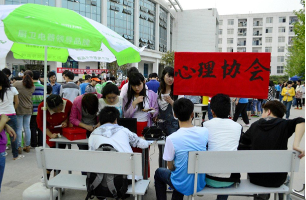 2014年4月16日下午6点,远远向一食堂门前望去,可以看到学生们摩肩接踵沸沸扬扬的场面,走近学生人群会感受到现场激情飞扬,夏日似乎更炎热了,因为今天是学校全院的社团活动,心理健康协会的答题活动亦是在此开展。