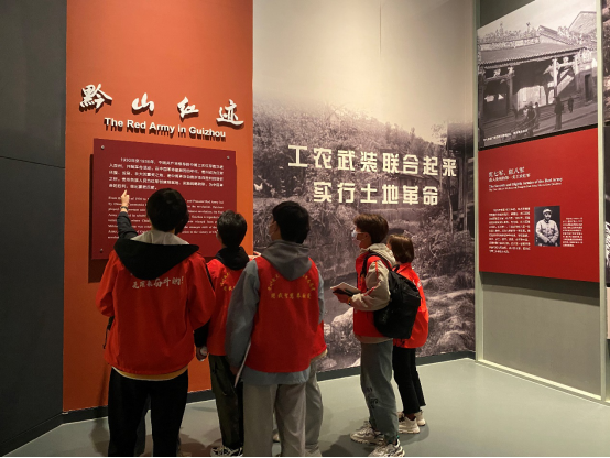 在民族贵州、历史贵州等主题展厅,同学们认真听取讲解,观看珍贵文物,了解贵州民族文化与文物,了解贵州红色文化。在“历史贵州”展厅,同学们驻足“黔山红迹”,仔细了解学习红军在贵州大地的光辉革命历程,追忆峥嵘岁月,重温红色记忆。