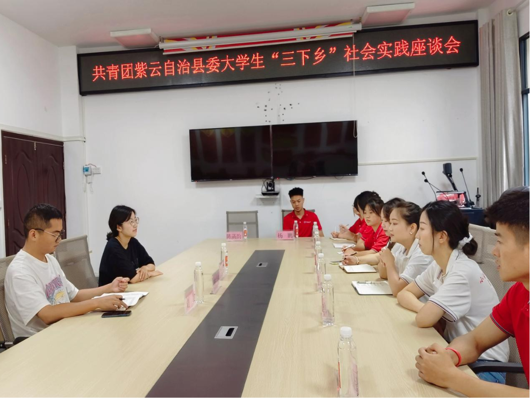 执“党建引领”之笔,绘就“共同奋进”新蓝图。7月15日上午,实践队抵达紫云县,与团县委相关工作人员开展三下乡社会实践座谈会,会上开展了以党建引领青年挺鹰担当交流座谈,更加明确了此次实践将以服务乡村振兴为根本任务,践行青年担当,与格丼村村民携手共进绘就新蓝图。
