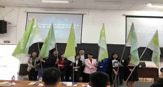 会议第一阶段,首先由共青团贵阳市委书记吕槐乐为大家介绍贵阳青年网络文明志愿者联盟的历史背景以及组办以来工作中出现的问题,并提出本次组办将是新媒体工作的升级,希望每一个联盟成员成为新媒体的优秀传播者。最后由各领导向企业、机关及各高校授旗并宣布贵阳市青年网络文明志愿者联盟成立。我校正式成为联盟的一员。