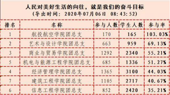 对于上一期,航投航空和艺术与设计学院的参与率有明显的上升。而这一期各个学院的排名除了前三仍然变化不大,但是后面的四个学院的竞争进行的如火如荼,大家这种不相上下的势头非常好,但是参与率也要靠所有的学生共同努力。