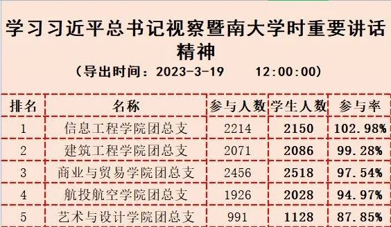 各学院的排名情况