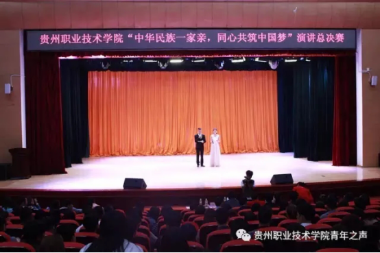 为喜迎党的十九大召开,深化培育和践行社会主义核心价值观,进一步在青年学生中增强对伟大祖国、中华民族、中华文化、中国共产党、中国特色社会主义道路的认同,2017年4月18日晚在贵州职业技术学院礼堂开展大学生以“中华民族一家亲,同心共筑中国梦”暨“五个认同”为主题的演讲比赛。担任此次活动的评委有团委副书记李雪芬老师、基础部主任陈国敏老师、基础部黄丹老师、学生处孙飞老师和艺术与设计学院陈璐老师。