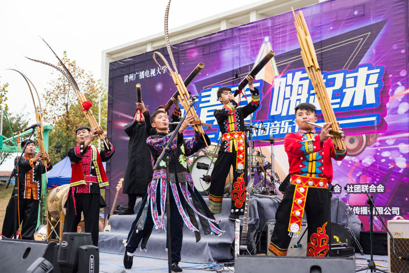 音乐节由艺术学院的芦笙乐团的表演开场,悠扬动听的民族音乐感染了在场的每一个观众,接着校内乐队、民谣组合、贵大留学生乐队、职业乐队等各类音乐风格的演员登台表演。演出活动一共持续了5个小时,演员们在舞台上全情投入深情演唱,加上绚丽的灯光舞台效果,带动全场了的观众气氛,同学们跟着乐队的节奏摇摆呐喊、挥舞手臂、尽情的释放青春的活力和激情。