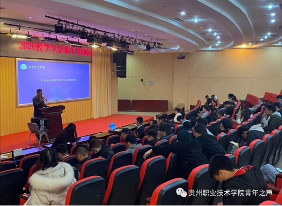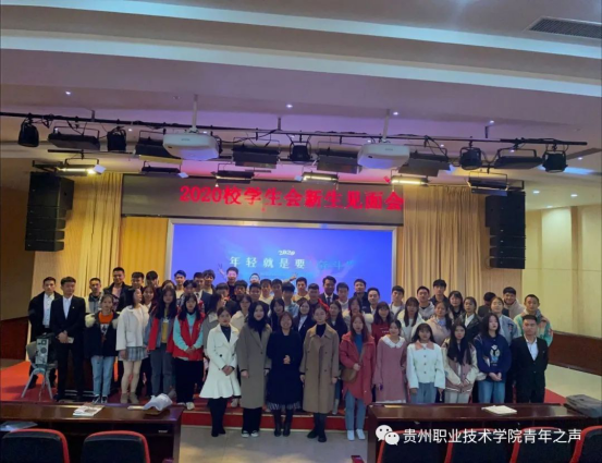 别过夏末的绚烂,迎来初秋的静美,我们有幸相遇在,贵州职院学生会,让我们共同携手,去追逐青春的梦想。为了让2020级新生更好的了解学生会这个大家庭,以备今后的学生工作顺利的开展,校学生会于2020年11月4日中午在我校图书馆二楼报告厅召开“贵州职业技术学院2020年新生见面会”,参会人员有邓福啦老师、毛鑫玥老师、陈宇佳老师、六大学生组织代表、校学生会干部和新成员。