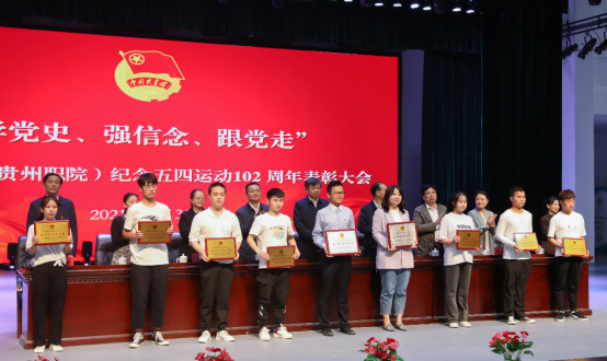 随后,学校党委委员、副校长于立群宣读《贵州职业技术学院关于表彰校级先进集体和优秀个人的决定》,校领导为2021届优秀毕业生、全校“劳动之星”、“优秀青年志愿者”、“优秀共青团员”、“优秀共青团干部”、“优秀基层团务工作者”、“五四红旗团总支”、“五四红旗团支部”的获奖个人和集体代表颁奖。
