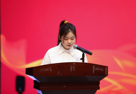 来自建筑工程学院工程造价191班敖春蕾同学作为优秀学生代表在大会上发言,表达出青年牢记嘱托跟党走,感恩奋进新征程的信心和决心。