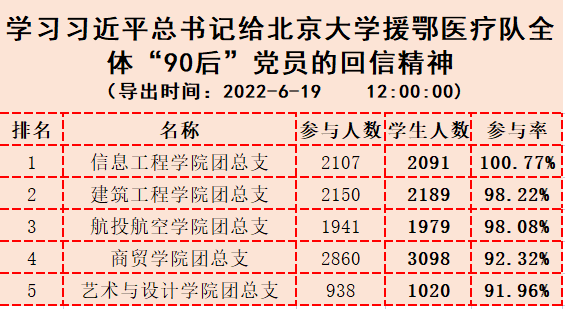在此次学习中,信息工程学院、建筑工程学院、航投航空学院参学率位列各学院前三,其中信息工程学院稳居第一,希望信息工程学院继续保持,也希望艺术与设计学院继续努力。