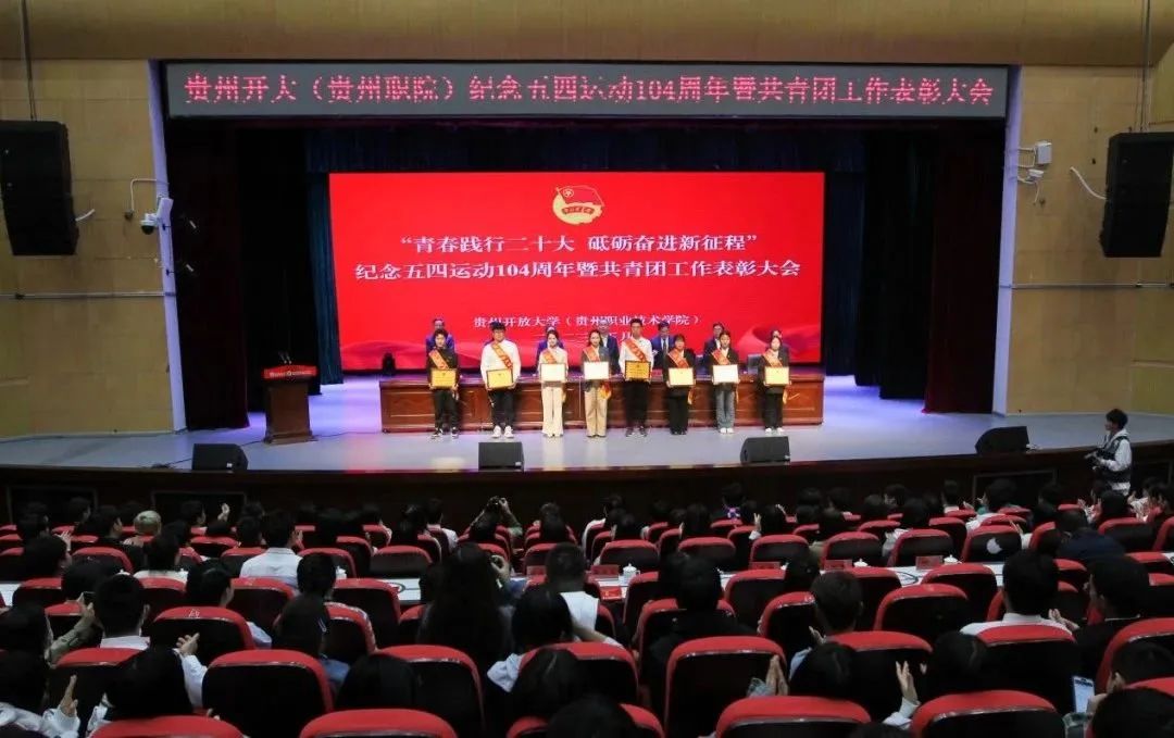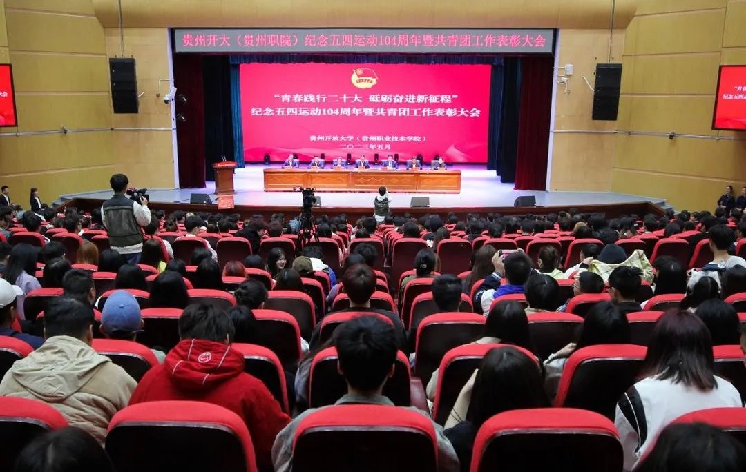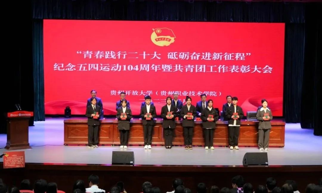 2023年5月11日,贵州开放大学(贵州职业技术学院)纪念五四运动104周年暨共青团工作表彰大会在学校大礼堂召开。学校党委副书记、校长汤健,党委副书记钱庆生,党委委员、副校长李勤,党委委员、纪委书记骆最勇,党委委员、副校长周勇,党委委员、组织部部长张仁俊,党委委员、宣传部部长何滨出席大会,学校相关部门负责人、青年教师代表、全体新团员及青年学生代表参加表彰大会,会议由校党委副书记钱庆生主持。