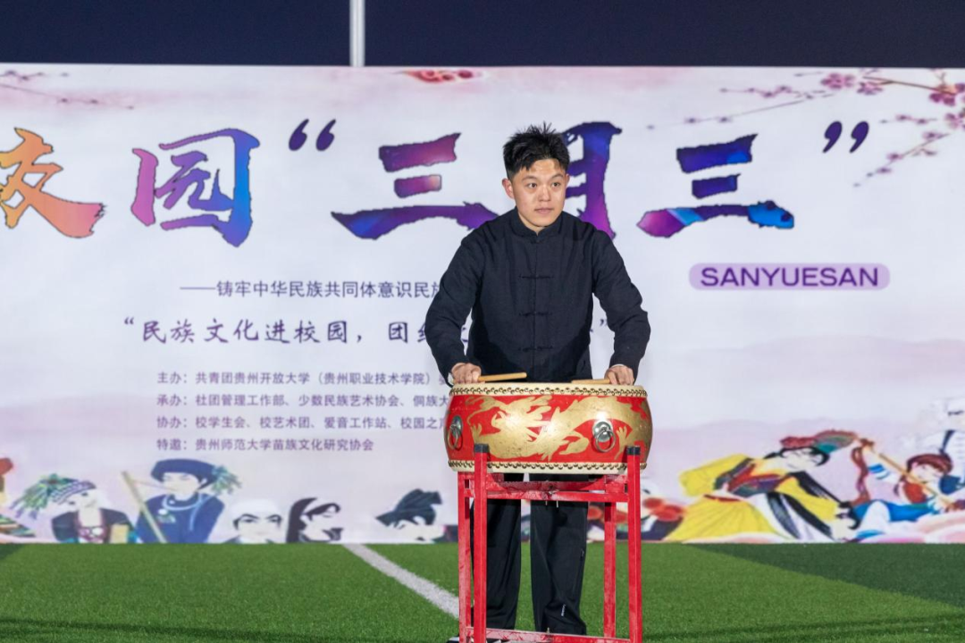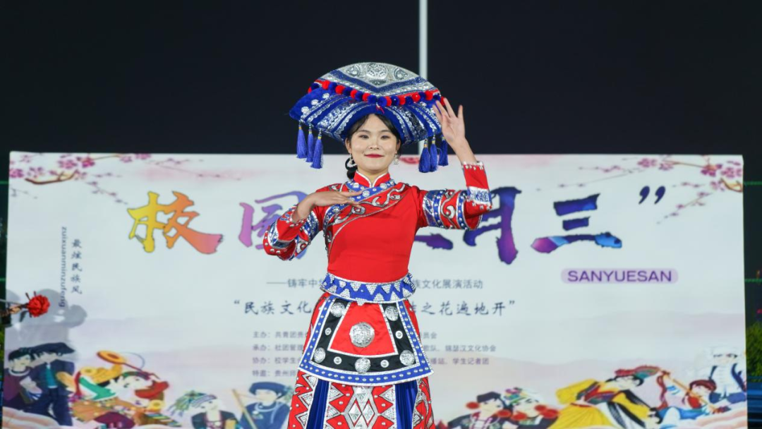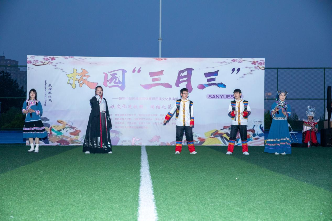 “乌蒙山连着山外山,月光洒下了响水滩……”4月11日晚上,学校足球场人声鼎沸,热闹非凡。“民族文化进校园,团结之花遍地开”——铸牢中华民族共同体意识校园“三月三”民族文化展演活动精彩上演。学校党委书记令狐彩桃到场观看,广大师生一起参与其中,共享民族文化盛宴。