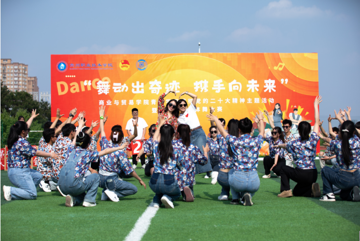 为进一步引领青年学习贯彻党的二十大精神,以习近平新时代中国特色社会主义思想为指导,以实际行动积极践行党的创新理论,展示新时代青年的昂扬姿态,加强班级凝聚力,丰富校园文化生活,4月18日,商业与贸易学院以“舞动出奇迹 携手向未来”为主题,在学校足球场开展青年学习贯彻党的二十大精神主题活动暨2023年集体舞大赛。学校党委书记宋广强、党委副书记钱庆生出席活动,团委书记李雪芬、团委副书记范少华、商业与贸易学院。